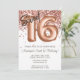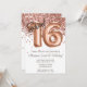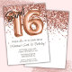 Convite de aniversário Dourado Sweet 16 e rosa rosa-gold elegante convite de aniversário moderno 16 para uma menina de 16 anos com moderno roteiro escrevendo e balões de folha divertida.