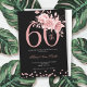 Elegante 60ª Festa de aniversário Rosa Dourada de convite a preto. Apresentando um arranjo de flores moderno.