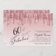 Elegante e chic 60º convite de aniversário com "60 & Fabuloso" gravado em um script de caligrafia na moda num fundo cor-de-rosa, com gotas de brilho sujo, cor-de-rosa e rosa.