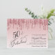 Elegante e chic 50º convite de aniversário com "50 & Fabuloso" gravado em um script de caligrafia em na moda, em um fundo cor-de-rosa, com brilho suave, cor-de-rosa e rosa.