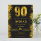Este Convite de aniversário 90 preto e Dourado apresenta uma folha de ouro falsa de pincelada número 90, perfeita para honrar nove décadas de vida. É na moda e elegante, ousado e ouro, que anuncia a ocasião, uma surpresa excelente para uma celebração de aniversário marcante.