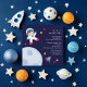 Convites de festas de aniversário de criança com tema espacial.