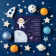 Convites de festas de aniversário de criança com tema espacial.