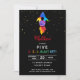Arco-Íris Envio Festa de aniversário Espacial Exterior Convite Preto. Estrelas de ouro de folha escura e foguetes de cor aquática arco-íris náutica extraterritoriais com temas simples e clássicos de festas de aniversário modernas. www.SamAnnDesigns.com