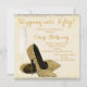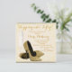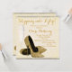 Sapatos de salto alto elegantes em champanhe dourado e brilho dourado, convite de aniversário de 50 anos em marfim bege e dourado. Você pode personalizar facilmente este lindo convite de aniversário em marfim e dourado adicionando seus detalhes no estilo de letra e cor, texto e layout de sua escolha.