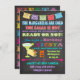 Convites de festas de aniversários bonito e coloridos da Fiesta mexicana com faixas brilhantes, tipografia divertida, uma grande margarita e taco em fundo de quadro. Então pegue uma bebida fria e salsa quente com este convite incrível. Ilustração desenhada à mão por McBooboo.
