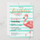 Convites Festa de aniversário Flamingo rosa com faixas das