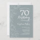 Convite de aniversário Floral de 70 de Aço Azul Design minimalista moderno com desenhos botânicos em destaque e letra de script de tipografia. Simples trendy convida cartão perfeito para uma festa de na moda. Pode ser personalizado para qualquer idade. Impressos convites Zazzle ou modelo de impressão digital instantânea para download.