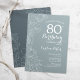 Convite de aniversário Floral de 80 de Aço Azul Design minimalista moderno com desenhos botânicos em destaque e letra de script de tipografia. Simples trendy convida cartão perfeito para uma festa de na moda. Pode ser personalizado para qualquer idade. Impressos convites Zazzle ou modelo de impressão digital instantânea para download.