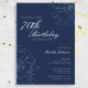 Convite de aniversário Floral Azul 70. Convide os convidados a comemorar em estilo este elegante convite de aniversário de um marco, com um simples, mas sofisticado design floral azul. As matizes suaves e o layout limpo criam um aspecto de eterno que é perfeito para qualquer ocasião especial. Ideal para aqueles que apreciam a beleza na simplicidade, este convite dá o tom para uma celebração graciosa e memorável.