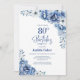 Convide seus amigos e entes queridos com este convite de aniversário 80 floral azul. A área de texto personalizável neste modelo de convite permite que você inclua facilmente todos os detalhes necessários para sua celebração especial de aniversário, incluindo as informações de data, hora, local e RSVP. Uma variedade de tipos de papel e estilos de canto estão disponíveis para seus convites exclusivos, juntamente com a opção de download se você preferir um formato digital.