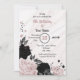 flores e folhas de cinza roxas, pretas e rosadas, românticas, em convites de aniversário botânicos de fundo mármore Os detalhes da brilha são simulados