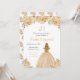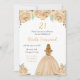 Este convite de aniversário apresenta flores florais de creme de pêssego de champanhe falsas e brilhantes, e uma bela princesa com cabelos loiros e um vestido elegante. Isto é perfeito para uma festa de aniversário.