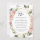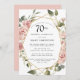 Bonito rosas rosa poeirentas criam uma fronteira floral moderna neste convite de aniversário 70.