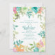 Novo para o Verão de 2024. A cor da água floral de Verão moderna e colorida apresenta flores cor-de-rosa, azuis-turquesa, amarelas e laranja. Eles formam uma estrutura botânica, rústica e bófia em torno de seus detalhes de festa de aniversário. Este item faz parte da coleção de Flores de Aquarela de Verão. Contém modelos de convite, sinais de boas-vindas e decorações de festas.