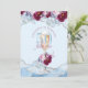 50 e fabuloso convite de aniversário azul de brilho prateado com brilho prateado com vidro de champanhe com floral.
