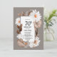 Celebre seu aniversário de 70 e convide seus amigos e entes queridos para a sua celebração de aniversário com este convite de aniversário floral de 70 de outono com uma fronteira de cinza com petúnias e margaridas brancas.