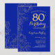 Convite de aniversário Floral Dourado Real Azul. Design minimalista moderno com desenhos botânicos em destaque, folha de ouro falsa e letra de script de tipografia. Simples trendy convida cartão perfeito para uma festa de na moda. Pode ser personalizado para qualquer idade. Impressos convites Zazzle ou modelo de impressão digital instantânea para download.
