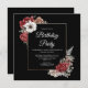 Placa de Convite de aniversário Dourada Rosa vermelha Floral Personalizada