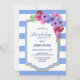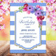 Convite de aniversário floral de lavanda listrado azul.