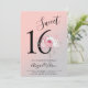 Bonito convite de aniversário Sweet 16 com rosas elegantes, fundo cor-de-rosa-rosado e fonte elegante de caligrafia. Carregue sua foto favorita.