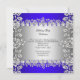 Convite para Festa de aniversário Floral Real Azul Elegante Silver, Festa de aniversário. Personalize com seus próprios detalhes.