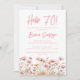 Convite de aniversário floral rosa simples para uma festa de aniversário divertida. A idade pode ser alterada.