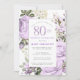 Honra uma mulher especial com este Convite de aniversário elegante e feminina. 80 é escrito em texto roxo grande. A comemoração de aniversário segue. O nome do convidado também está em letras cor-de-rosa. O resto do texto é cinza de pomba mole. Os detalhes da comemoração de 80 são cercados por uma estrutura floral chica que é decorada com rosas roxos e folhas verdes de sábio. Enquanto é um design tradicional, a folhagem botânica aberta e arejada e o texto lhe dão uma vibração contemporânea. O convite de volta é roxo. Infelizmente, os 80 algarismos não são editáveis. Se precisares de mais um ano, terei todo o prazer em fazer um design personalizado para ti.