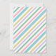 Convide seus convidados para um dia mágico! Celebre o aniversário de seu filho com convites de aniversário unicórnios com um desenho de orelhas de um unicórnio, corneta de cinza prateada e olhos longos. O unicórnio veste flores bonito ao redor de seu chifre e estrelas e corações sob seus olhos. A parte de trás do convite de festas de aniversário fofo apresenta listras pastéis em diferentes larguras para um toque caprichoso.
