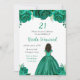 Este convite de aniversário apresenta flores florais verdes e brilhantes e uma bela princesa com pele escura e um vestido elegante. Isto é perfeito para uma festa de aniversário.