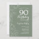 Convite de aniversário Floral Verde Sage. Design minimalista moderno com desenhos botânicos em destaque e letra de script de tipografia. Simples trendy convida cartão perfeito para uma festa de na moda. Pode ser personalizado para qualquer idade. Impressos convites Zazzle ou modelo de impressão digital instantânea para download.