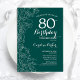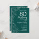 Convite de aniversário Floral Verde 80. Design minimalista moderno com desenhos botânicos em destaque e letra de script de tipografia. Simples trendy convida cartão perfeito para uma festa de na moda. Pode ser personalizado para qualquer idade. Impressos convites Zazzle ou modelo de impressão digital instantânea para download.