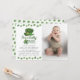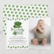 Celebre o primeiro aniversário do seu pequeno com estilo com nosso convite de aniversário Sweet Lucky One! Com a encantadora frase "Ele é um sortudo" uma foto e belos trevos em tons de verde aquarela, este convite é perfeito para qualquer celebração em torno do Dia de São Patrício.