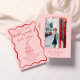 Se você procura um convite de aniversário único elegante e facilmente editado, este é perfeito para você. Como podem ver, ele apresenta um roteiro escrito com a mão vermelha com creme branco e um roteiro vermelho sobre fundo retrocor-de-rosa. Com uma torre de champanhe colorida desenhada com a mão vermelha. E um quadro ondulado desenhado pela mão de creme. E RSVP no verso com dentro de foto personalizável com um quadro de fita de arco desenhado à mão. Com informações inteiras que podem ser personalizadas facilmente clicando no botão personalizar. Este convite de aniversário de tendências Quirky e exclusivo também é um convite eletrônico digital se você quiser enviá-lo por e-mail ou texto. Então pegue e faça seus convites verdadeiramente engajados.