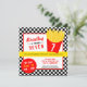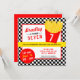 Planejar uma festa do francês? Vamos ajudá-lo a fazer uma festa de aniversário divertida! Personalize o nosso Convite de aniversário francês Fry com o nome, a idade e os detalhes do seu filho. Não se esqueça de comprar toda a coleção para os que têm de fazer parte! Nós projetamos este convite tendo em mente seu amante francês. O design apresenta um recipiente de cor vermelha, estilo comida rápida, preenchido com batatas fritas amarelas, juntamente com um fundo preto e branco de pranchas de xadrez.