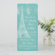 Aqui está um convite elegante inspirado em Paris, França, que apresenta a Torre Eiffel e o Fleur de lis. Use isso para festa de aniversário, cartão de salvar a data, festa de aniversário de casamento e mais. Personalize com seu próprio texto, estilo de fonte e cor de fonte para se adequar à sua ocasião especial. O design é apresentado em ambos os lados do convite.