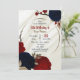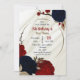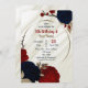 marinho romântico flores azuis e vermelhas e folhas de bronze de ouro no convite de aniversário botânico de fundo do mármore Os detalhes da brilha são simulados