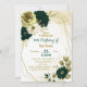 Lindas flores brancas esmeraldas de marfim verde e douradas com folhas de ouro em um convite de aniversário de quadro geométrico dourado. São simulados os detalhes do brilho dourado. PARA MAIS PRODUTO CORRESPONDENTE, clique na coleção acima ou entre em contato comigo.