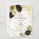 Lindas flores brancas de marfim marrom e douradas com folhas de ouro em um convite de aniversário de quadro geométrico dourado. São simulados os detalhes do brilho dourado. PARA MAIS PRODUTO CORRESPONDENTE, clique na coleção acima ou entre em contato comigo.