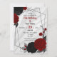 flores e folhas de cinza negras e vermelhas românticas no convite de aniversário botânico de fundo do mármore Os detalhes da brilha são simulados