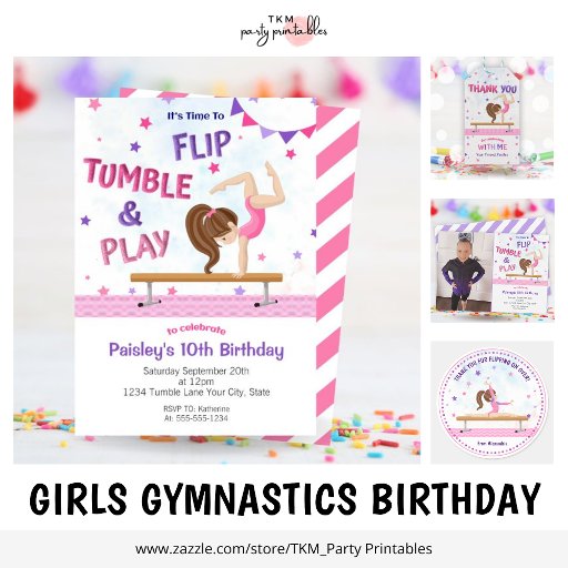 Convite de aniversário de ginástica fotográfica para meninas. Nosso Modelo de Convite de Aniversário para as Nossas Raparigas vai convidar seus hóspedes para sacudir, tropeçar e jogar na festa de ginástica de suas garotas! Apenas personalize, adicione sua foto e informações de festas hoje para começar todas as suas ideias de festa de aniversário! Veja mais ideias sobre temas de festas em www.tkmpartyprintables.com