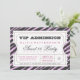 Um design do divertimento sob a forma de um bilhete da admissão do VIP, no impressão na moda da zebra de preto e do roxo contem toda a informação do evento em um fácil personalizar o formato. Uma grande maneira de construir o entusiasmo de seus convidados porque antecipam o evento especial que é planeado comemorar o doce 16 da sua filha!