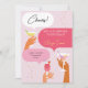 Convites Festa de aniversário Ilustrativa Vermelha e Rosa