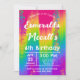 Celebre com um toque de cor! Este convite de festa vertical vibrante apresenta um fundo ombre de arco-íris brilhante com confetes divertidos, perfeito para um aniversário infantil animado ou qualquer celebração alegre.