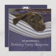 Este convite mostra um chocolate adormecido Labrador Retriever em sua cama roxa para um convite de aniversário de pijama. Personalize o texto de modelo na frente e atrás, remova o texto ou clique em personalizar para selecionar um estilo de tipo, tamanho e cor desejados. Substitua ou mantenha a fotografia do cobrir marcador de posição. Uma foto quadrada com fundo de cor sólida funcionará melhor para mostrar o texto do modelo.