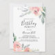 Este elegante convite de aniversário floral cor-de-rosa é perfeito para uma simples celebração de aniversário. A design apresenta rosas rosas desenhadas à mão e peônias com folhas verdes e cinzas, inspirando beleza natural.