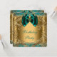 Convite de aniversário em jade e dourado com redemoinhos dourados lindos modelo de convite. Este convite de aniversário em jade azul-esverdeado e dourado é facilmente personalizado para o seu evento, basta adicionar os detalhes do evento, estilo de letra, tamanho e cor da fonte e texto. Por favor, observe que todos os adesivos, cartões e desenhos de convite que você encontrará no Zazzle são gráficos impressos sem joias reais, laços, relevos, dourados ou peças ou partes adicionadas.