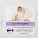 Uma bolinhas roxa, uma foto de uma bebê qualquer convite de aniversário.