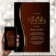 Convide seus amigos e entes queridos com este moderno convite de aniversário preto, ouro e laranja queimado. A área de texto personalizável neste modelo de convite permite que você inclua facilmente todos os detalhes necessários para sua celebração especial de aniversário, incluindo as informações de data, hora, local e RSVP. Uma variedade de tipos de papel e estilos de canto estão disponíveis para seus convites exclusivos, juntamente com a opção de download se você preferir um formato digital.