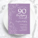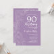 Convite de aniversário lavanda Floral Roxo 90. Design minimalista moderno com desenhos botânicos em destaque e letra de script de tipografia. Simples trendy convida cartão perfeito para uma festa de na moda. Pode ser personalizado para qualquer idade. Impressos convites Zazzle ou modelo de impressão digital instantânea para download.